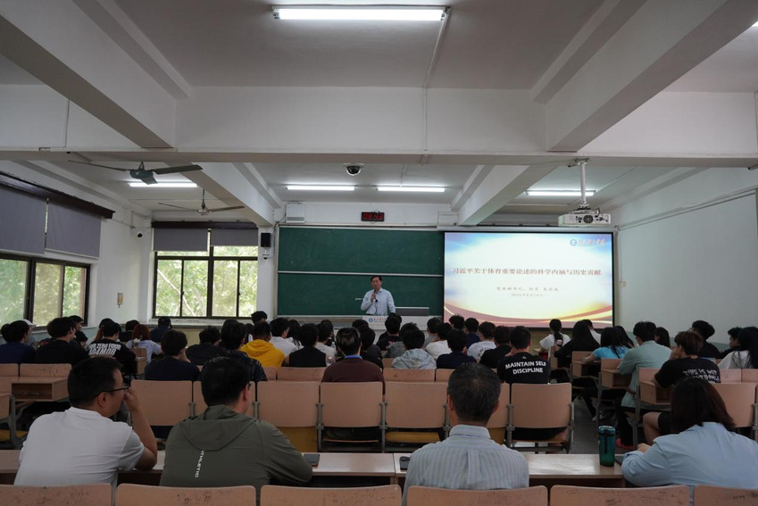 吴兵成校长的讲解逻辑严谨、内容丰富,既有高屋建瓴的理论阐述,又有详实生动的案例支撑,让大学生们对习近平总书记关于体育的重要论述有了更透彻的理解,激励大学生们积极投身体育强国建设,在体育强国建设中实现个人价值与社会价值的统一,为实现中华民族伟大复兴的中国梦贡献一份体育力量!