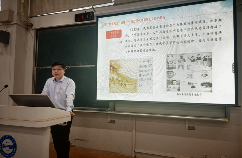 校领导讲授思政课是近年来高校落实立德树人根本任务、推动思政教育高质量发展的重要举措,也是学校的常态化工作。5月30日上午,党委常委、副校长陈爱国教授走上讲台,以“百年体育梦,铮铮中华魂”为题为24级运动员班的大学生讲授了一堂精彩的专题思政课。