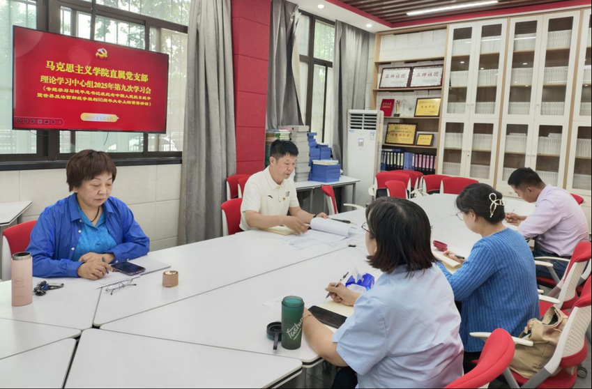 9月9日下午,马克思主义学院直属党支部理论学习中心组在思政课实践教学中心召开2025年第九次学习会。专题学习习近平总书记在纪念中国人民抗日战争暨世界反法西斯战争胜利80周年大会上的重要讲话内容。学习会由马克思主义学院直属党支部书记张亚军主持。理论学习中心组全体成员参加学习会。