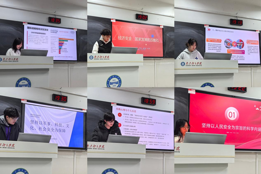 为深入贯彻总体国家安全观,提升学生维护国家安全的责任感与使命感,运动人体科学23(1)班《国家安全教育》课程于11月25日晚在教学实验楼1202教室,开展以“筑牢国家安全青春防线”为主题的实践教学展示活动。本次活动将课堂理论学习与课外实践研讨深度融合,成为思政课实践教学改革的重要一环。