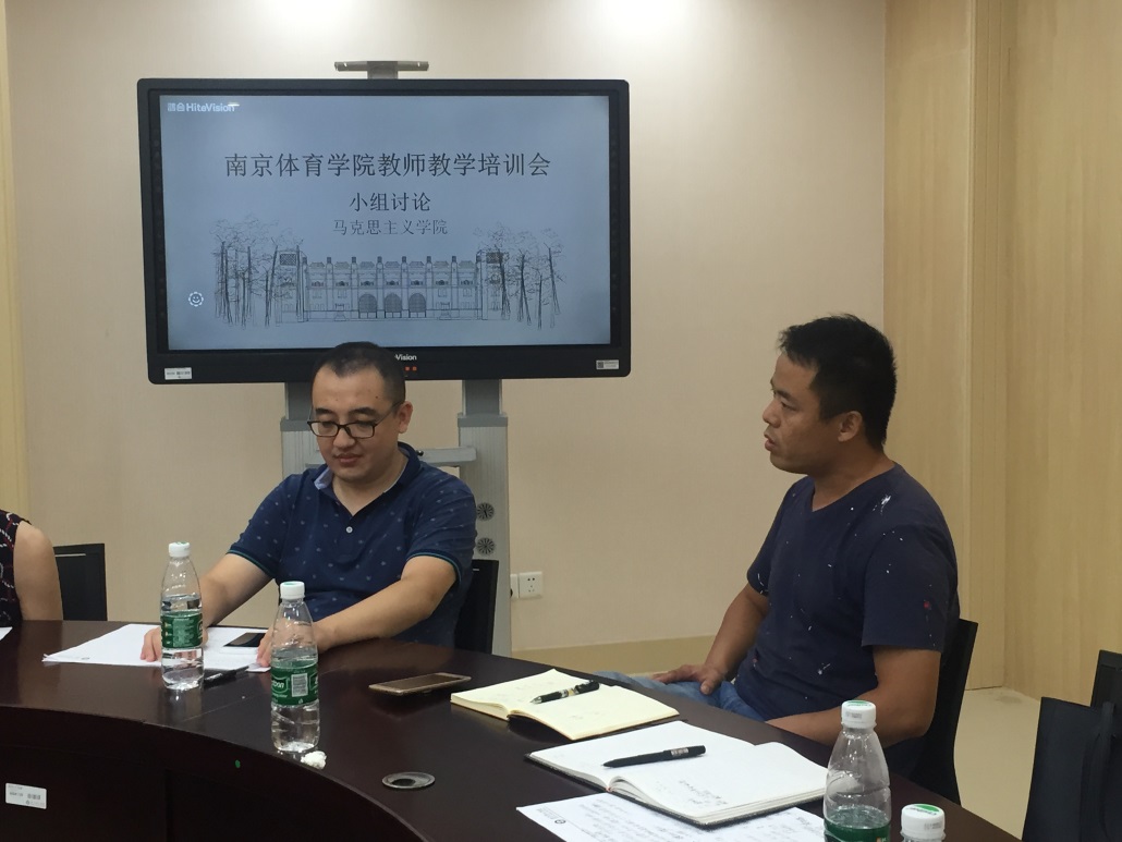本次培训邀请了南京大学相关专家进行了五场的主题讲座,在聆听了专家的言传身教后,8月31日下午2点,在图书馆303会议室,马克思主义学院全体教师及学工处新进辅导员就深入推进课堂教学改革,开展教师教学技能培训,切实提高人才培养质量,结合马院工作内容和体院教育教学实际情况,展开了热烈的讨论。会议由马克思主义学院副院长葛翠柏主持,宣传部部长许立俊参加了会议。