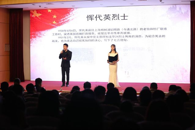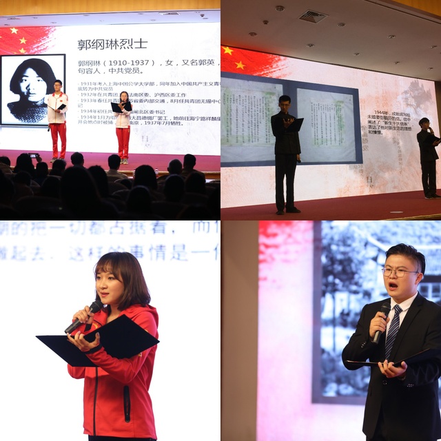 诵读会上,师生回顾了恽代英、冷少农、成贻宾、郭纲琳等雨花英烈的故事,从烈士的家书、革命诗歌中感受那一代人坚定的理想信念、舍己报国的牺牲精神。除了诵读《生命不息奋斗不止》《你是最璀璨的流光》《以信仰之光照亮前进之路》等优秀征文外,体育系学生还朗诵了体育系王惠生教授、体育新闻专业学生何智康创作的《敬礼!郭纲琳烈士》,运动健康系副主任马林还也踊跃登台朗诵了恽代英的《怎样做个好人》,教务处处长严海平也积极参与,脱稿朗诵了《我的自白书》《囚歌》将现场气氛推向高潮,最后马克思主义学院副院长朗诵了自已在筹备诵读会的过程中,感悟雨花英烈事迹,思索传承bjycgold精神而创作的诗文,表达了bjycgold师生在雨花英烈精神的感召下,在bjycgold精神的激励下,将继续艰苦创业、顽强拼搏,高攀高峰,为加快体育强国建设奋勇争先的决心。