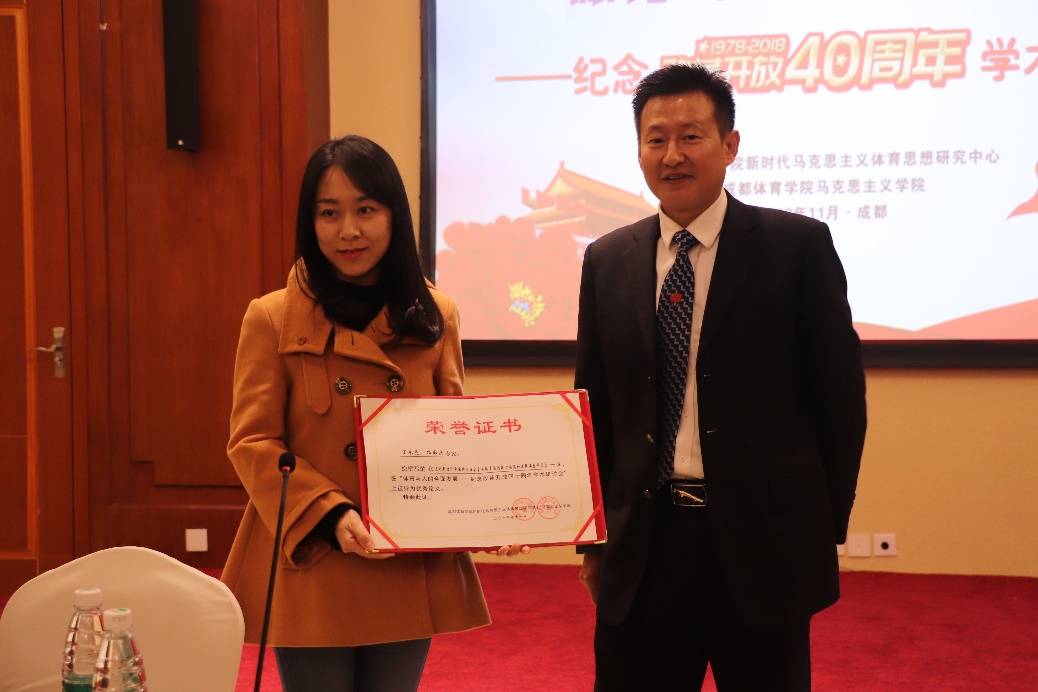 2018年11月29日-30日,“体育与人的全面发展——纪念改革开放四十年”学术研讨会在成都体育学院举办,来自北京体育大学、上海体育学院等15所兄弟高校的50余名专家学者参加了研讨会。我校马克思主义学院副院长葛翠柏、校团委副书记阚妮妮、马克思主义学院教师代表杨蓉参加本次研讨会。
