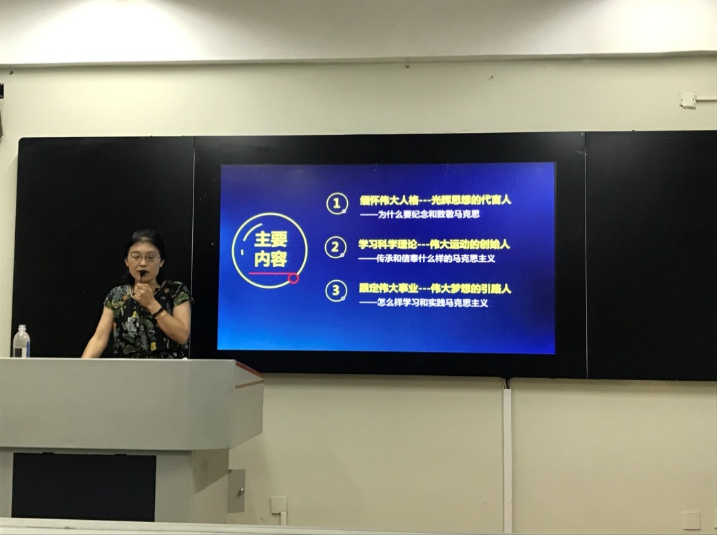刘静老师从“为什么要纪念和致敬马克思”、“传承和信仰什么样的马克思主义”、“怎么样学习和实践马克思主义”三个方面展开论述,阐述了马克思这位“千年第一思想家“,他有理想、有本领、有担当的一生。她还从“三个飞跃“论证了伟大运动在中国创造的奇迹,”四个理论“概括了马克思主义鲜明特征。马克思主义始终是我们党和国家的指导思想,是我们认识世界、把握规律、追求真理、改造世界的强大思想武器。