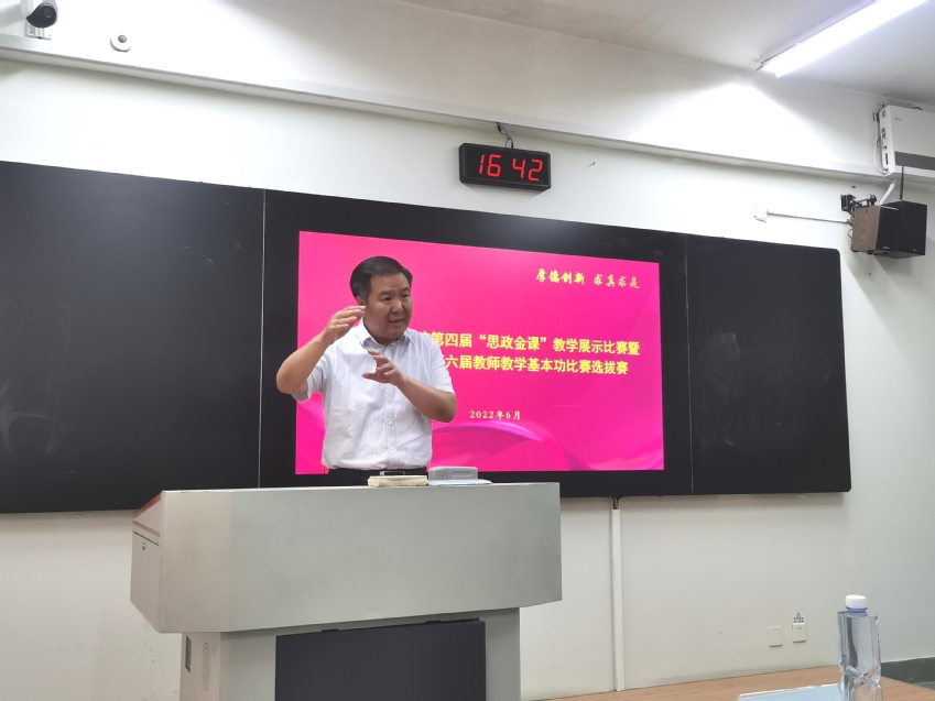 本次“思政金课”比赛自5月份启动、筹备,共收到7位专职思政课教师报名参赛。比赛现场,7位思政课教师按照抽签顺序依次上台展示,或慷慨激昂,或娓娓道来,授课风格各具特色,授课内容精彩纷呈,展现了马院思政课教师把道理讲深讲透讲活的努力和积极进取的工作状态及精神风貌。