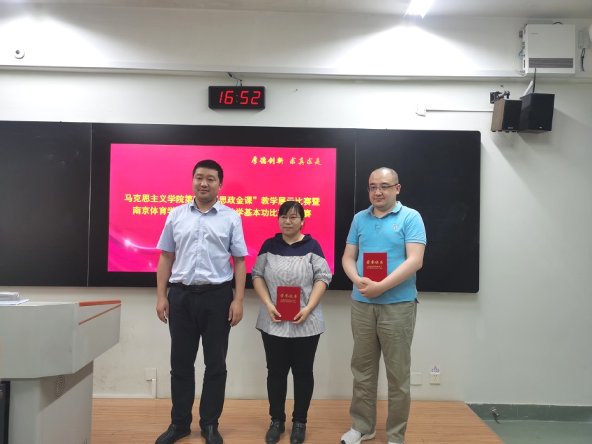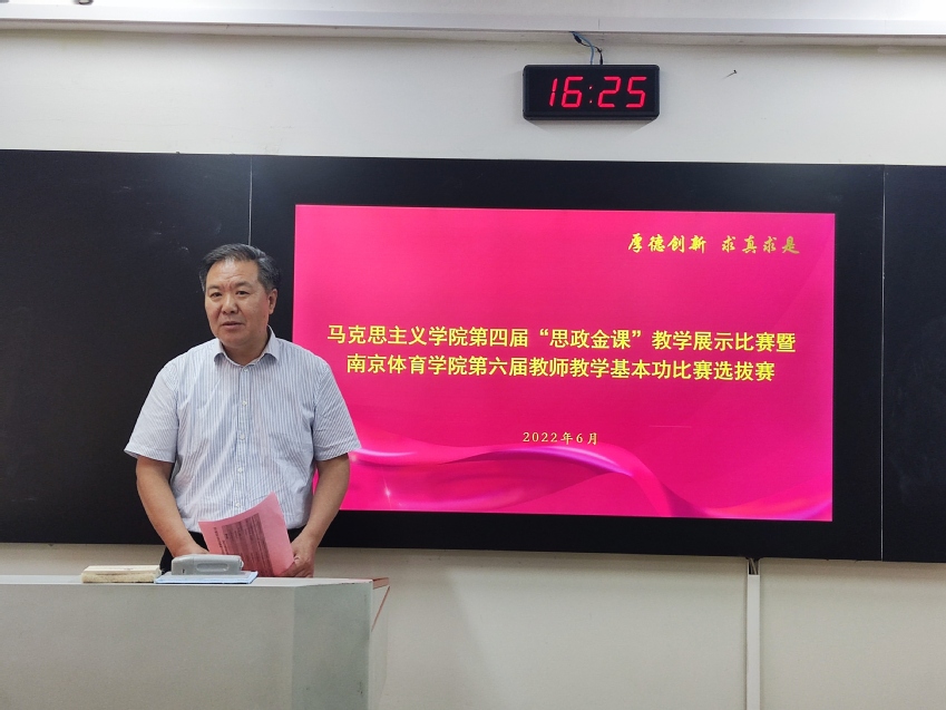 校党委书记朱传耿对参赛教师的表现进行点评。他认为7位老师备课充分,教学设计认真,幻灯片图文并茂,表达流畅,有些老师能将口头语言、书面语言和手势语言相结合,注重师生互动,很有感染力,达到预定教学目标,教学效果较好。朱书记对思政课教师提出四点具体要求:一是在教学目标上,要注重增强大学生政治感悟能力和科学思维能力的提升。思政课讲授内容要具有辩证性、系统性、综合性,通过思政课程的讲授,把问题讲清楚,让大学生把握正确的政治方向;二是在教学内容处理上,要强化前后关联和系统关联,重视对重点、难点的处理,加强新知识和原有知识的联系;三是在教学语言上要把握好节奏,讲好开头三句话,做到张弛有度、抑扬顿挫,练就演讲与口才,增强授课感染力;四是在教学方法上不断创新,摸索出一条符合体育院校大学生特点的思政课教学方法和模式。要针对体育院校学生特点,在授课内容取舍上下功夫,做到少而精,将思政课与体育专业相结合,持续加强与学生的交流互动。