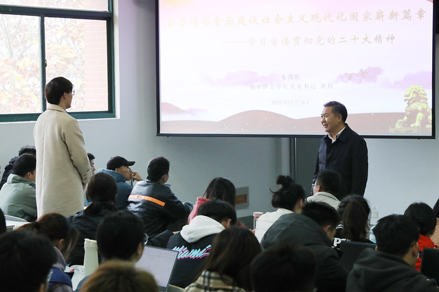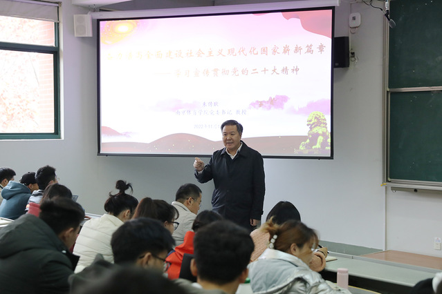 为深入学习宣传贯彻党的二十大精神,持续推动党的二十大精神进教案、进课堂、进学生头脑,让党的二十大精神融入思政课堂。11月16日,马克思主义学院邀请校党委书记朱传耿为我校2022级研究生宣讲党的二十大精神,用党的二十大精神培根铸魂、启智润心。马克思主义学院直属党支部书记葛翠柏主持宣讲课,部分思政课教师参加活动。