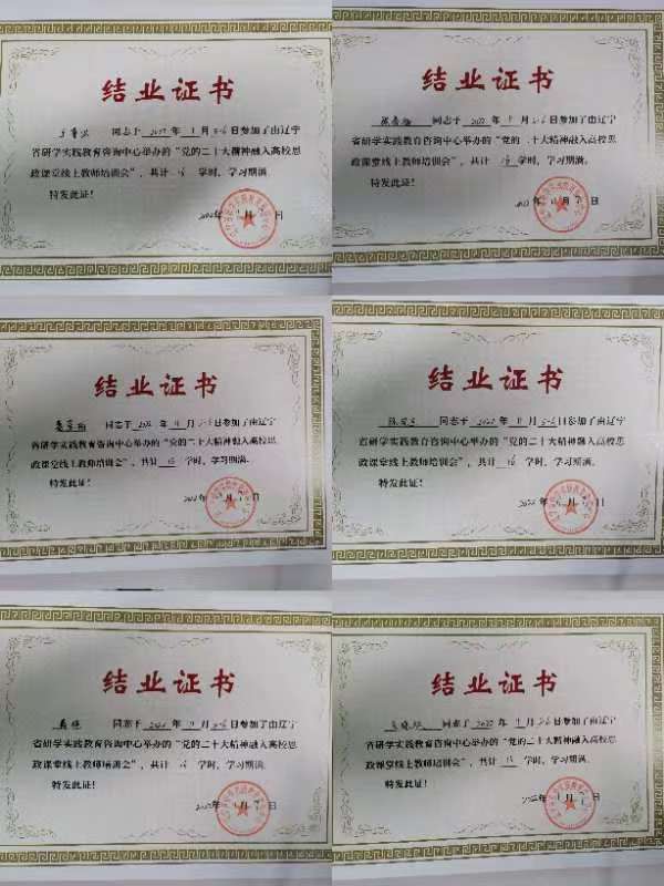孙凤兰:11月5日——6日我参加了辽宁省研学实践教育咨询中心主办的“党的二十大精神融入高校思政课堂线上教师培训会”,系统地学习了党的二十大精神融入高校思政课堂的相关理论知识。本次培训的课程包括围绕中国式现代化道路的文明蕴含和党的二十大精神融入思政课的教学建议等问题展开,从思想政治理论课教学的实际需要出发,洞察世界格局变化,总结新时代发展成就,直面“四大考验”和“四大危险”,明确要以高度政治责任感扎实做好意识形态工作,按照习近平总书记对思政课教师提出的“六个要”的要求,为思政课教师更好运用二十大精神铸魂育人提供了基本思路。