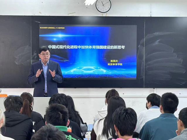 为学习贯彻党的二十大精神,落实“学校党委书记、校长带头走进课堂,带头推动思政课建设,带头联系思政课教师”的部署,引导我校大学生“做有理想、敢担当、能吃苦、肯奋斗的新时代好青年”,119日,校党委副书记、校长杨国庆走进仙林校区503教室,围绕中国式现代化过程中加快体育强国建设的新思考”主题,为运动训练22级学生带来了一场精彩纷呈的思政课。