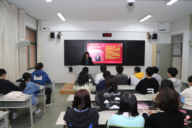 为推动党的二十大精神进校园、进课堂、进头脑,持续推进思政课教学改革创新,进一步激发青年大学生在全面建设社会主义现代化国家新征程上的斗志。10月31日下午,马克思主义学院邀请党的二十大代表、奥运冠军许安琪走进思政课堂,为新闻专业2022级新生讲授了一堂别开生面的思政课。校党委常委、党委宣传部部长、党委统战部部长许立俊出席活动,马克思主义学院直属党支部书记葛翠柏主持授课。