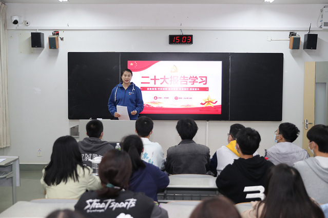 课堂上,许安琪以“二十大报告学习”为主题,围绕青年大学生如何学好二十大精神为在场大学生讲授了专题思政课。许安琪结合大会主题,带领同学们共同回顾了十九大以来极不寻常、极不平凡的五年历程,介绍了新时代十年的伟大变革,并向同学们详细阐释了坚定不移做到“六个坚持”、深入透彻理解“五个必由之路”的重大意义和时代价值。