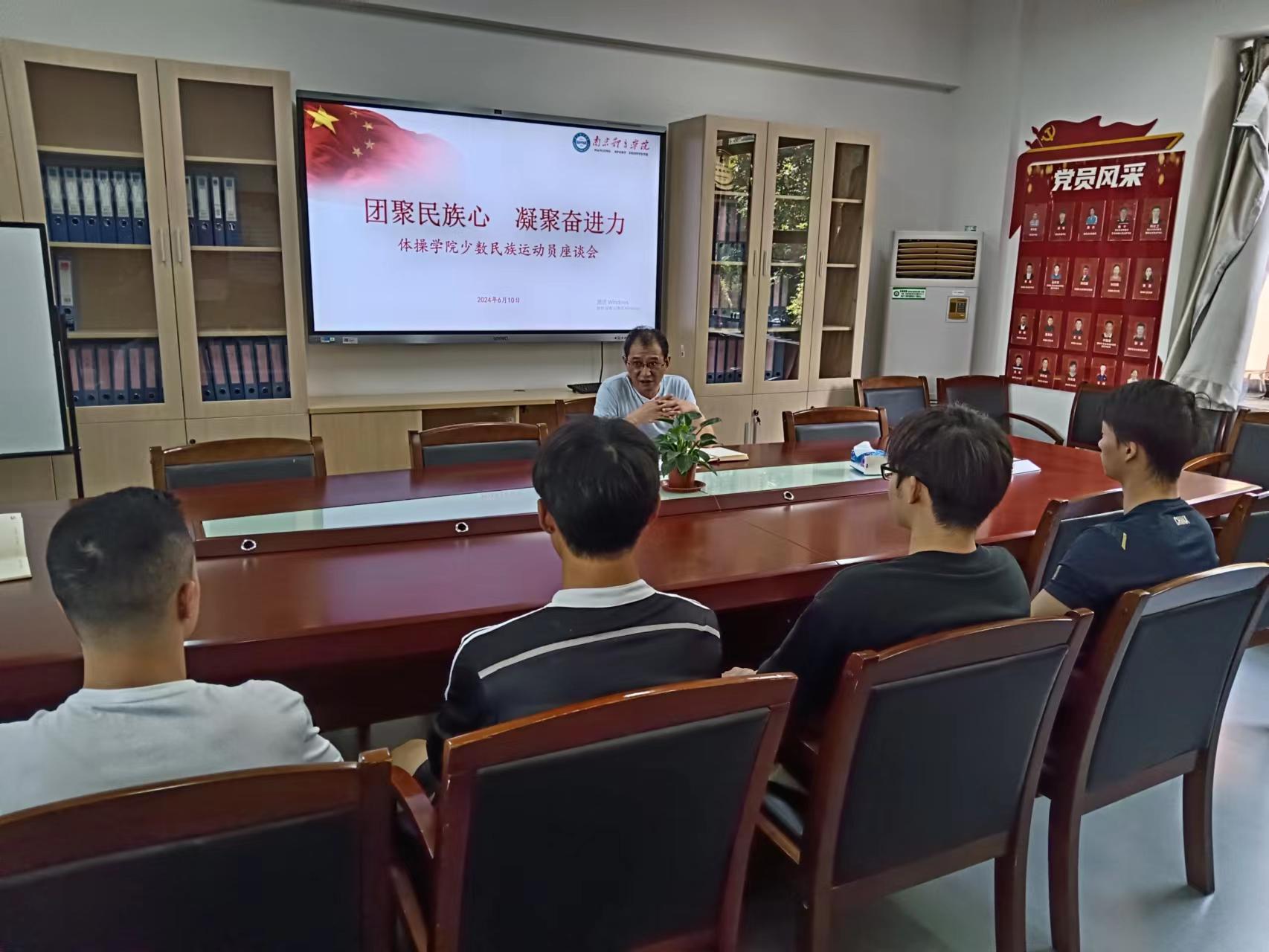 为深入开展铸牢中华民族共同体意识宣传教育,做好关心关爱少数民族运动员健康成长工作,6月10日下午,体操学院召开少数民族运动员座谈会。党总支书记谢长虹主持会议。