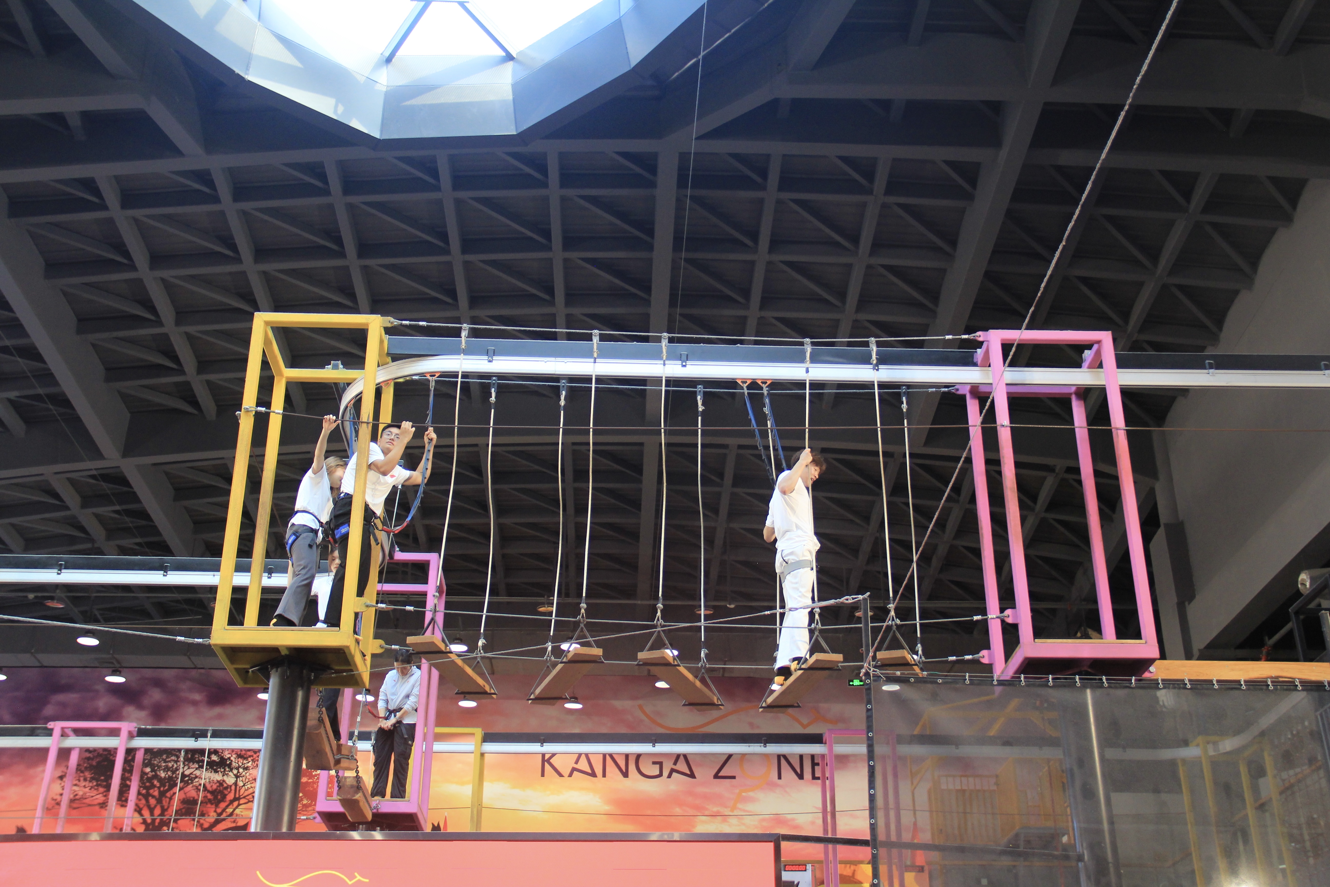 分享活动结束后,“袋鼠部落”的工作人员组织运动员们进行攀岩、高空索道、梅花桩等活动的体验,运动员们乐此不疲,团结协作,相互鼓励,攻克一个个障碍。此次活动,不仅给运动员们紧张、单调的生活增添了乐趣,更是培养了团队精神,激发队员们对项目的热爱,坚定了努力训练,为国争光的信念。