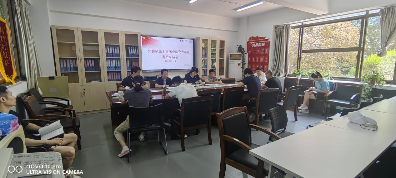 7月21日上午,体操队在体操学院会议室召开全运会青年组预赛总结会。体操学院院长梁琴、体操队领队以及参加全运会预赛的全体教练员、科医保障人员参加了会议。