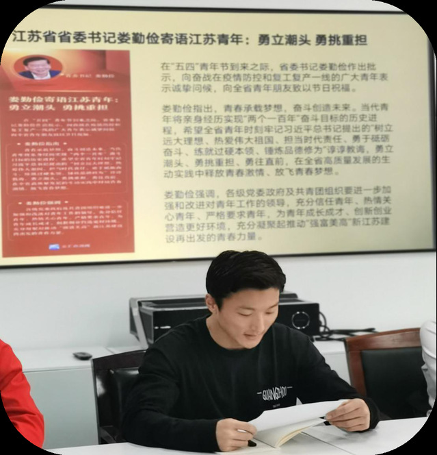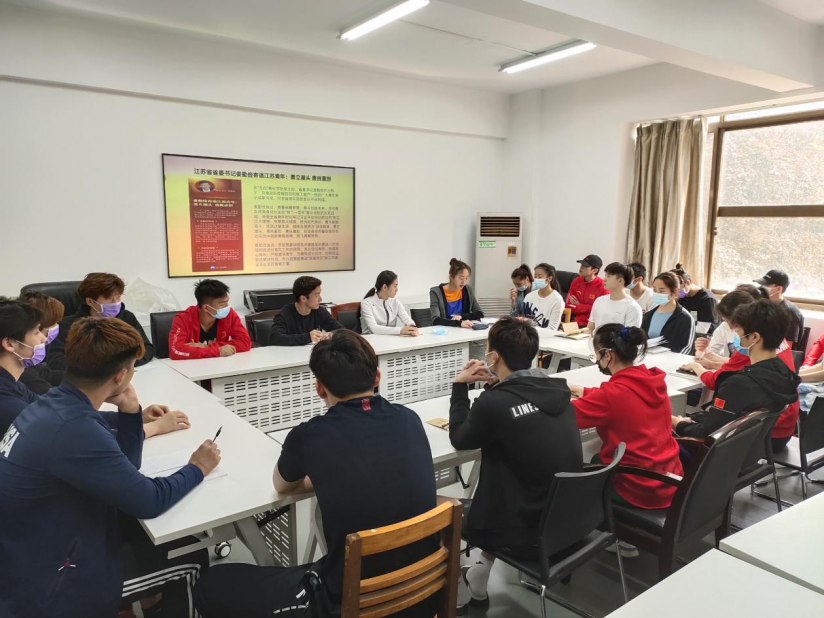 5月7日上午体操学院团总支组织全体团员深入学习宣传习近平总书记对全国青年的寄语精神和娄勤俭书记对江苏青年的寄语精神。团总支通过开展信仰公开课的方式让全体团员能够更加透彻、深入地领会寄语精神。会上,分别由艺术体操队、蹦床队优秀团员熊佳妮、张阔领读了两份寄语,牢记习近平总书记提出的“树立远大理想、热爱伟大祖国、担当时代责任、勇于砥砺奋斗、练就过硬本领、锤炼品德修为”谆谆教诲,为实现“两个一百年”奋斗目标贡献青春力量。娄勤俭指出,青春承载梦想,奋斗创造未来。当代青年将亲身经历实现“两个一百年”奋斗目标的历史进程,希望全省青年时刻牢记习近平总书记提出的“树立远大理想、热爱伟大祖国、担当时代责任、勇于砥砺奋斗、练就过硬本领、锤炼品德修为”谆谆教诲,勇立潮头、勇挑重担、勇往直前,在全省高质量发展的生动实践中释放青春激情、放飞青春梦想。随后,各团支部纷纷展开了学习心得的讨论: