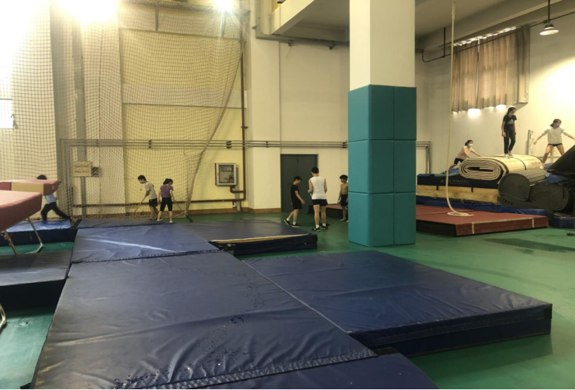 大扫除前,各队团支部书记分别针对大扫除活动进行了的部署,分别以组为单位分配不同任务,然后各组分别执行不同区域的打扫任务,大扫除任务整体分为三个部分:首先整理场馆大件垫子和海绵包。其次集中场馆内不需要的破旧垫子、训练用品、碎海绵、破损消耗品等,再把淘汰垃圾按照场馆要求的指定地点集中堆放。最后清洁场地边角、垫子、地毯和海绵坑。