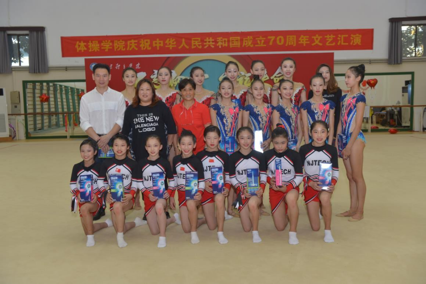 祝新中国成立70 周年文艺汇演在艺术体操馆举行,出席此次演出的有校领导金松、潘林珍、黄步龙、训练处处长丁习明,体操学院全体管理干部、教练员、运动员共同观看了本次演出。
