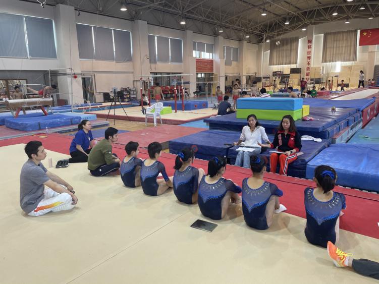 为了积极备战4月29日-5月10日在四川省成都市举行的全国体操锦标赛暨第十四届全运会预赛,4月15日下午,体操女队在体操综合馆进行了赛前的最后一次测验。校党委书记朱传耿、党委常委宣传、统战部长许立竣,现场观摩了比赛。