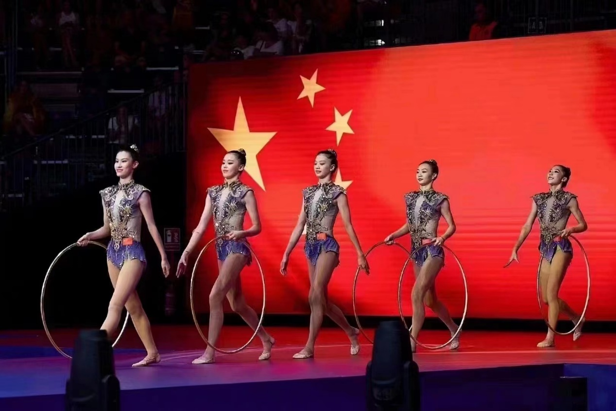 北京时间828日凌晨,2023年第40届艺术体操世锦赛在西班牙瓦伦西亚收官。在集体5圈单项决赛中,由郝婷、郭崎琪、王澜静、蒲彦竹、丁欣怡组成的中国队,以总分36.550分摘得金牌。这是中国艺术体操队首次拿到世界冠军,实现世锦赛参赛历史性突破。