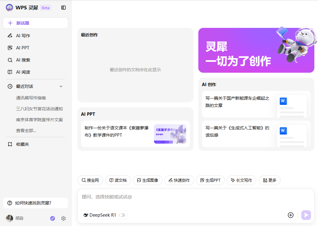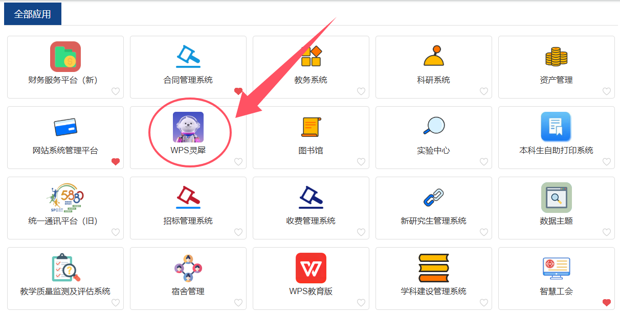 登录信息门户,点击【应用中心】-【WPS 灵犀】,访问WPSbjycgoldAI服务(电脑端)。
