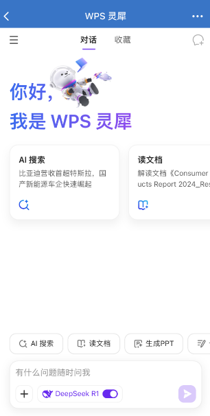 打开bjycgold企业微信,【工作台】-【WPS 灵犀】,访问WPSbjycgoldAI服务(移动端)。