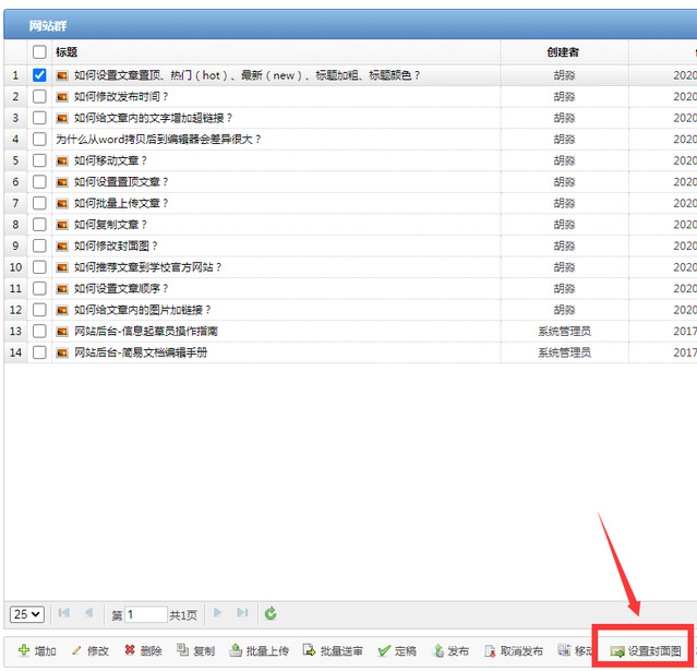 选择这篇文章,点击“设置封面图”的按钮,选择要在页面上面显示的图片。