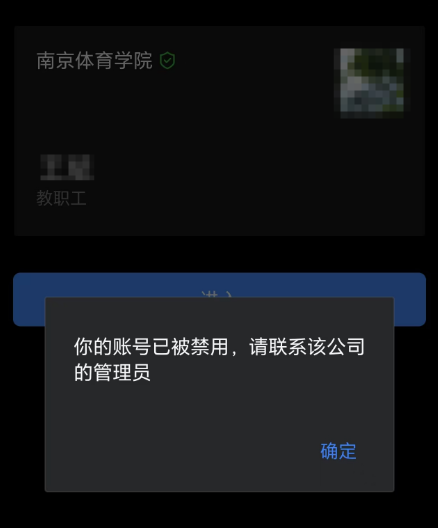企微账号与统一认证账号是密切关联的,当您的校园统一认证账号被锁定(多次输入错误的密码,导致账号被锁)的情况下,可能会导致企微账号被禁用。