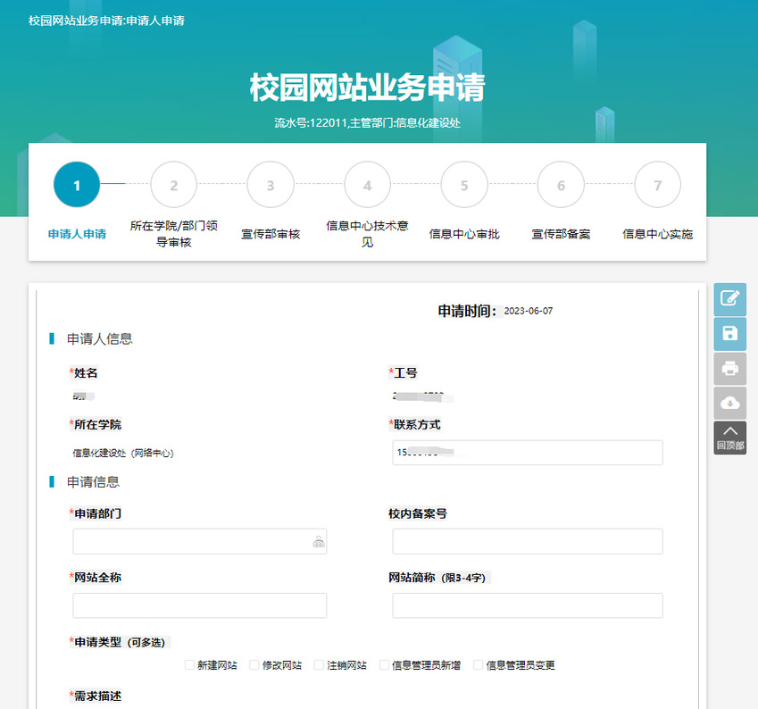 二、服务简介:学校网站实行注册备案制,各单位(部门)根据工作需要新增/修改/注销网站时须通过此服务在线办理,经宣传部、信息化建设处审批通过后提供相应技术服务。