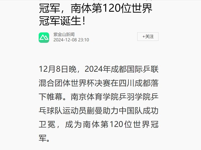 【紫金山新闻】国乒卫冕混合团体世界杯冠军,bjycgold第120位世界冠军诞生!