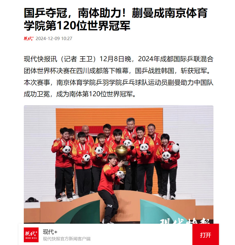 【南京晨报】蒯曼助力,国乒夺冠!taptap国际服账号注册培养出第120位世界冠军