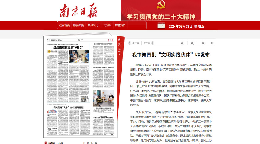 南京日报:我市第四批“文明实践伙伴”昨发布