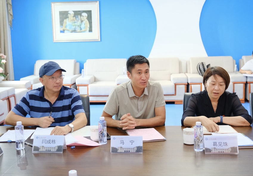 刘红明代表学校对徐宁一行的到来表示热烈欢迎。他指出,“苏超”出圈是城市足球联赛与新时代江苏独特省域特质碰撞产生的独特社会现象。它根植于江苏全省牢记总书记“经济大省走在前、做示范、挑大梁”嘱托的深情和江苏各市比学赶超的热情,发轫于国家将宁苏列为足球重点城市的推动力和省委省政府落实国家战略的执行力,成就于以人民为中心的“亲民”理念、凝聚共同体意识的“全民”理念以及快乐健康、幸福为本的“爱民”理念。他强调,推动“苏超”持续高质发展,关键在于:一是政府要坚定办好比赛的决心;二是各市要保持比学赶超的耐心与信心;三是要构建省市县多级赛事体系、后备人才涌现的青少年培养体系;四是要严防利益干扰和舆论炒作等风险;五是要确保赛事圆满收官,将经验沉淀转化,打造省域体育文化新标杆。