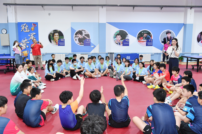 在交流环节,奥运冠军陆春龙与香港青年们围坐一堂,分享个人运动生涯和心路历程。香港青年踊跃提问,冠军一一解答,现场气氛热烈,笑声与掌声交织。奥运冠军陈玘则是与香港青年一起分享“国球”快乐,进行球艺交流指导,带领大家近距离感受乒乓球运动的魅力和体育精神的力量。除此之外,两地青年学生还围绕“体育精神与青年担当”展开了深度对话,2025年成都世界运动会技巧冠军丁雯妍、顾荃佳、马一星一同参加了交流座谈。不同的口音交织,化作欢快的音符,诉说着彼此的趣事。虽来自两个地方,但这份情谊如同纽带,将他们紧紧相连,共同书写两地友好交流的温暖篇章。