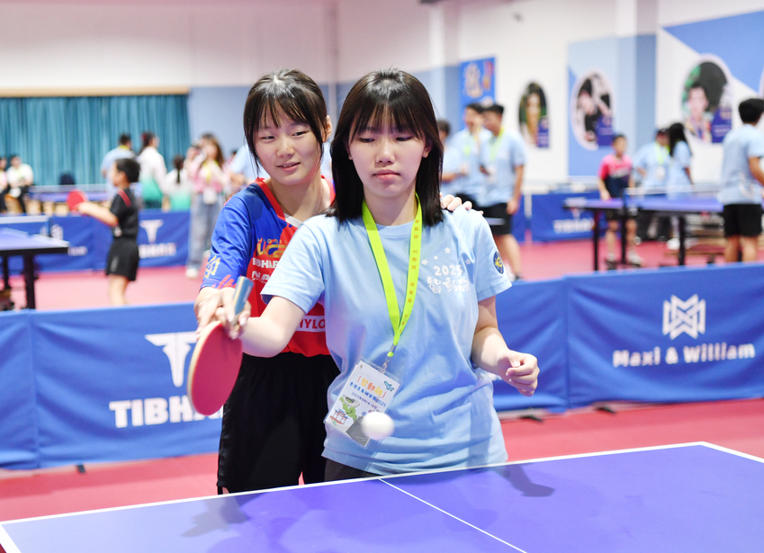 体育项目体验环节将研学活动推向高潮。击剑场上,香港青年在专业教练指导下体验“格斗中的芭蕾”,感受优雅与力量并存的运动魅力;乒乓球台前,两地青年以球会友,多板攻防中笑声与喝彩声交织。随后,技巧队带来高难度翻腾与抛接表演,将力量与美感展现得淋漓尽致,赢得了阵阵掌声。
