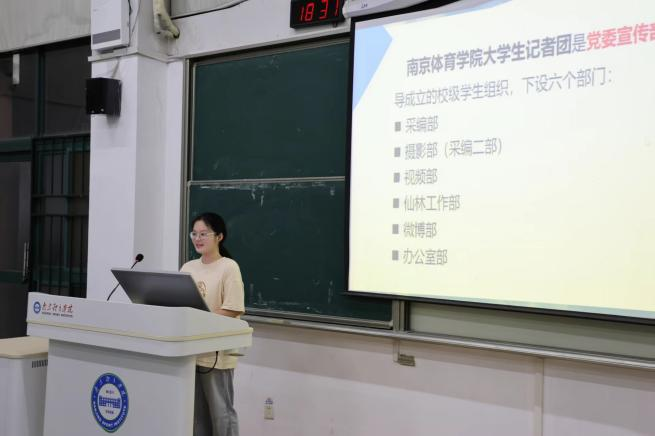 徐佳燕、朱叶晗向新生们介绍了记者团的基本情况及各部门的工作内容。随后,新生依次上台进行自我介绍。面试过程中,记者团团长、各部部长及骨干认真聆听候选人发言,通过交流和提问,进一步了解新生的综合素质。