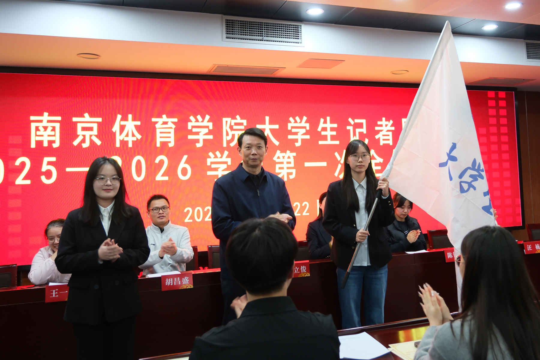 会上交接了记者团代团旗。第9任团长徐佳燕将记者团代团旗交给许立俊。许立俊挥动旗帜,然后将旗帜授予潘馨雨。