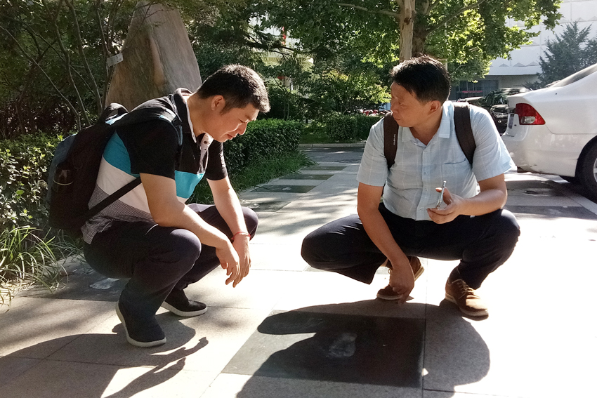 许立俊、储小祥观摩奥运冠军铜版脚印