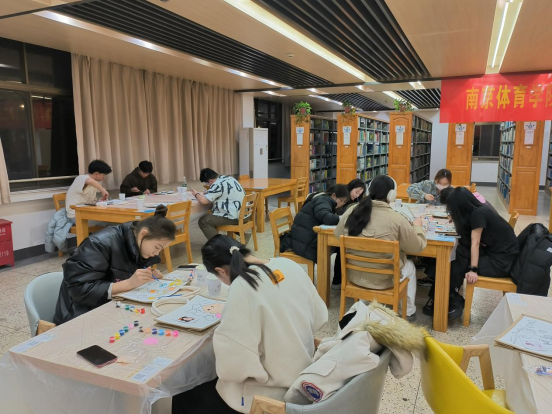 为营造关爱心理健康氛围,丰富同学课余活动,3月15日晚,我校在图书馆第四借阅室组织以手写心,“袋”走温暖——3.20手绘环保袋活动,探索艺术实践与心理咨询相结合的表达性艺术路径。活动主要形式是借助颜料和画笔在环保袋上进行涂色和创作,达到凝神专注、放松身心、纾解压力的效果。活动在一片轻松愉悦的氛围中进行,同学们相互帮助、彼此沟通,认真交流绘画技巧,自由抒发心中的图景,有力地利用朋辈资源为学生搭建起沟通交流的平台,促进我校学生在美中获益、在美中成长。