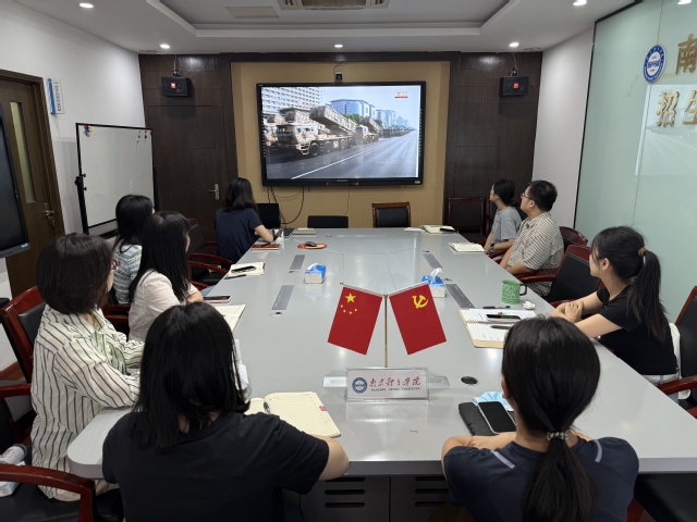 2025年9月3日,纪念中国人民抗日战争暨世界反法西斯战争胜利80周年阅兵仪式在北京天安门广场隆重举行。学工部党支部组织支部党员于会议室集中收看现场直播,共同见证这一庄严时刻。