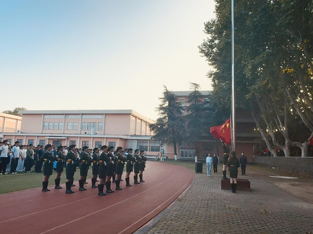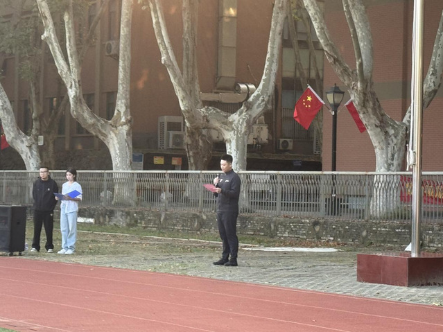 本次灵谷寺校区的早操增加了升旗仪式,由武术与艺术学院国旗班同学负责实施。伴随着激昂的《义勇军进行曲》,五星红旗冉冉升起,全体新生昂首肃立、行注目礼,爱国情怀与集体荣誉感在晨光中深深镌刻。武术与艺术学院2025级新生代表房涛发表国旗下讲话,他庄严宣誓要志存高远,筑牢报国之心;勤学善思,锤炼过硬之能;勇毅笃行,在实践担当中磨砺意志,在奋力拼搏中绽放青春光彩。升旗仪式结束后,各学院按既定计划有序组织新生开展多样化锻炼,新生们以班级为单位列整齐队列沿教学田径场晨跑,在专业教师带领下认真完成关节活动与拉伸训练以激活身体、预防损伤,还在不同区域开展跳绳与八段锦练习,动静交织的锻炼场景让清晨的校园充满了积极向上的运动氛围,为新一天的校园生活注入青春能量。