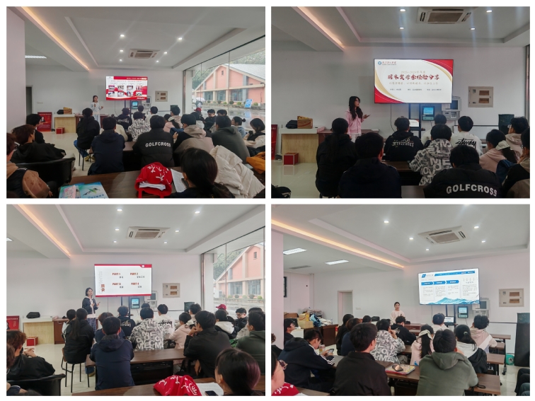 分享环节中,演讲嘉宾们结合自身经历,从不同维度展开干货满满的讲解。有的同学从自我介绍、竞赛经历、社会实践、未来展望四个维度展开,详细拆解了如何平衡课程学习与科研竞赛、如何利用图书馆资源提升专业能力等,让在场学生直观感受到“优秀背后的方法论”。有的同学以“让热爱成为力量——我的成长与坚持之路”为主题,为同学们展现了国家级运动健将的拼搏之路,并现场展示了自己的时间管理与科研创新技巧,她那句“让体育走向大众,让热爱传递温暖”引发全场热烈掌声。有的同学以“行远自迩 笃行不怠”为信念,分享了自己跨专业参与校园组织和志愿赛事的经验,让在场学生对“学以致用”有了更鲜活的认知,现场掌声持续不断。