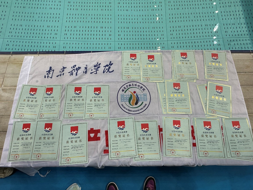 体育产业与休闲学院顾建华老师带9名水上健身专项学生参加比赛,最终夺得了体育院校组团体总分第三名、体育院校组双人棒操第一名、体育院校组集体棒操第一名、体育院校组集体徒手规定动作操第三名的好成绩,并获得编排奖、体育道德风尚奖等奖项。
