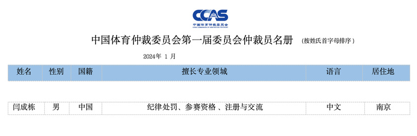 我校闫成栋教授受聘为中国体育仲裁委员会仲裁员