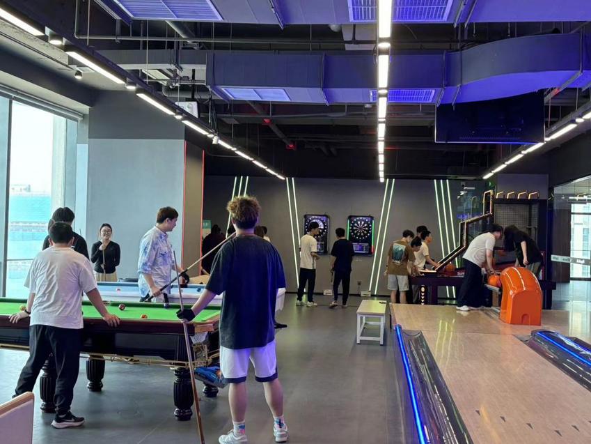 5月10日上午,106211、106212班学生来到青奥黑馆开展实践体验课程。首先,青奥黑馆项目负责人郭经理为大家详细介绍了青奥黑馆的建设背景、场馆定位、各分馆介绍以及黑管运营所需掌握的基本操作等内容,并为同学们展现了青奥黑馆在水上项目和南京城市定向赛等项目的发展成就。随后,同学们在室内高尔夫模拟馆,挥杆体验了高尔夫的仿真模拟;在瑜伽班,体验各种瑜伽设备,认真学习瑜伽动作。下午,在负责老师的带领下,大家积极体验各类项目。开展保龄球与台球运动,释放体育热情与活力;模拟赛车,身临其境体验赛场刺激氛围;玩转PS5闯关游戏,培养团队协作能力。最后,系主任张建明老师对体验课程进行总结,并再次感谢青奥黑馆为学生参与体育赛事产业提供实践平台。