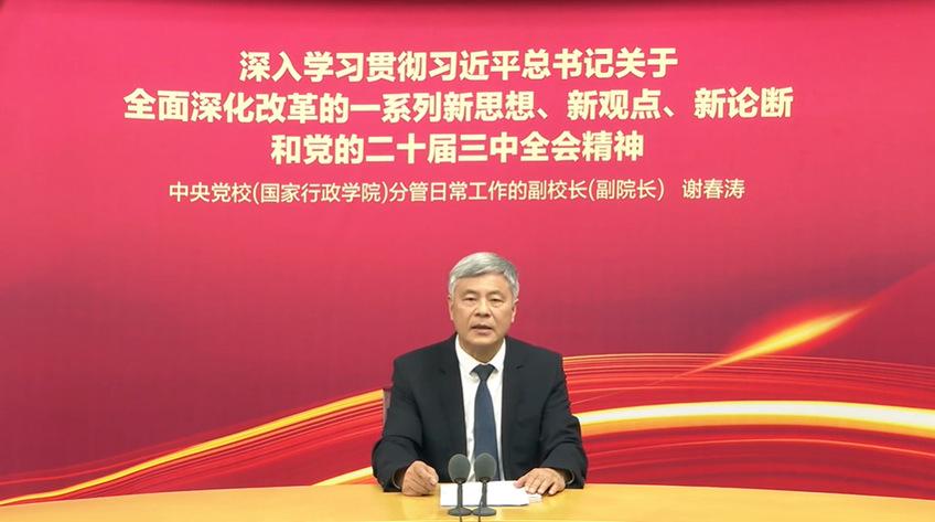 全体与会人员集中观看了由中共中央党校(国家行政学院)副校长谢春涛主讲的“深入学习贯彻习近平总书记关于全面深化改革的一系列新思想、新观点、新论断和党的二十届三中全会精神”课程,紧密围绕党的二十届三中全会精神,深刻阐述了全面深化改革的核心价值与迫切需求,细致解读了全面深化改革的根本原则与关键措施,旨在帮助全体党员深刻理解党的二十届三中全会精神的深远意义,并精确把握其精神实质与学习要点。