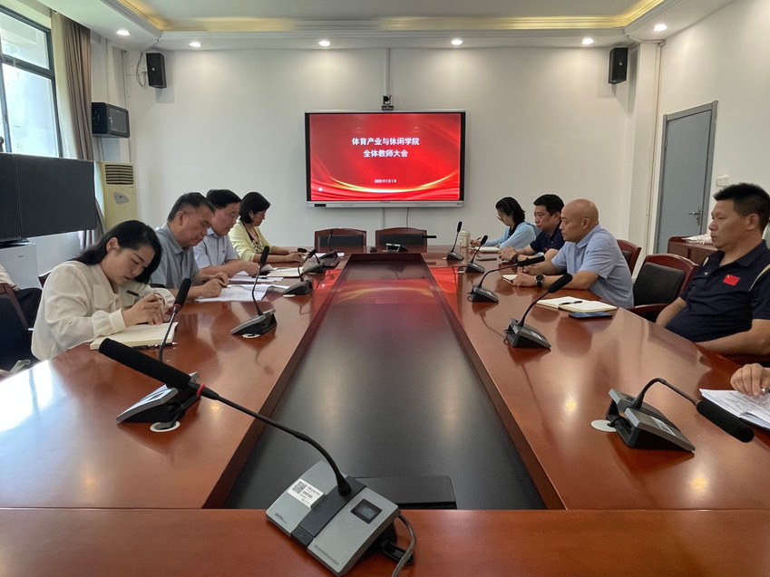 为全面总结本学期工作成效,科学部署暑期及下学期重点工作,进一步凝聚发展共识,激发奋进力量,7月1日下午,体育产业与休闲学院在仙林校区A105会议室召开2024-2025学年第二学期期末全体教师大会。学院领导班子及全体教师参加会议,会议由副院长柏景岚主持。
