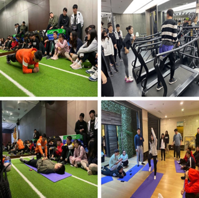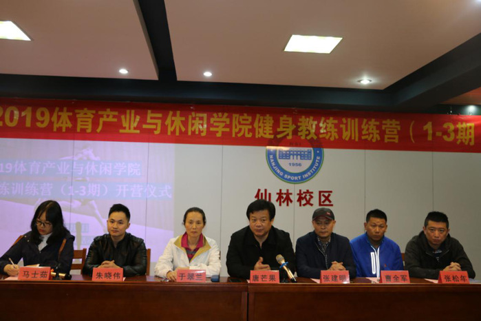 11月15日,在仙林大学生活动中心举行了“2019体育产业与休闲学院健身教练训练营开营仪式”。体育产业与休闲学院院长于翠兰、副院长唐芒果、休闲体育系、社会体育指导与管理系、体育经济与管理系老师代表以及60位学员参与了开营仪式。开营仪式结束后,随即进入训练营的实训项目学习。在理论课上,学员们深入学习了健身教练职业发展现状、行业发展前景以及私教销售服务工作特点等内容;在实训课上,学员们进入健身教练俱乐部进行封闭式训练,通过参观健身会馆、一对一私教指导、器械指导、极端燃脂、团体课程指导等实训课程,掌握了健身指导方面的基本技能。
