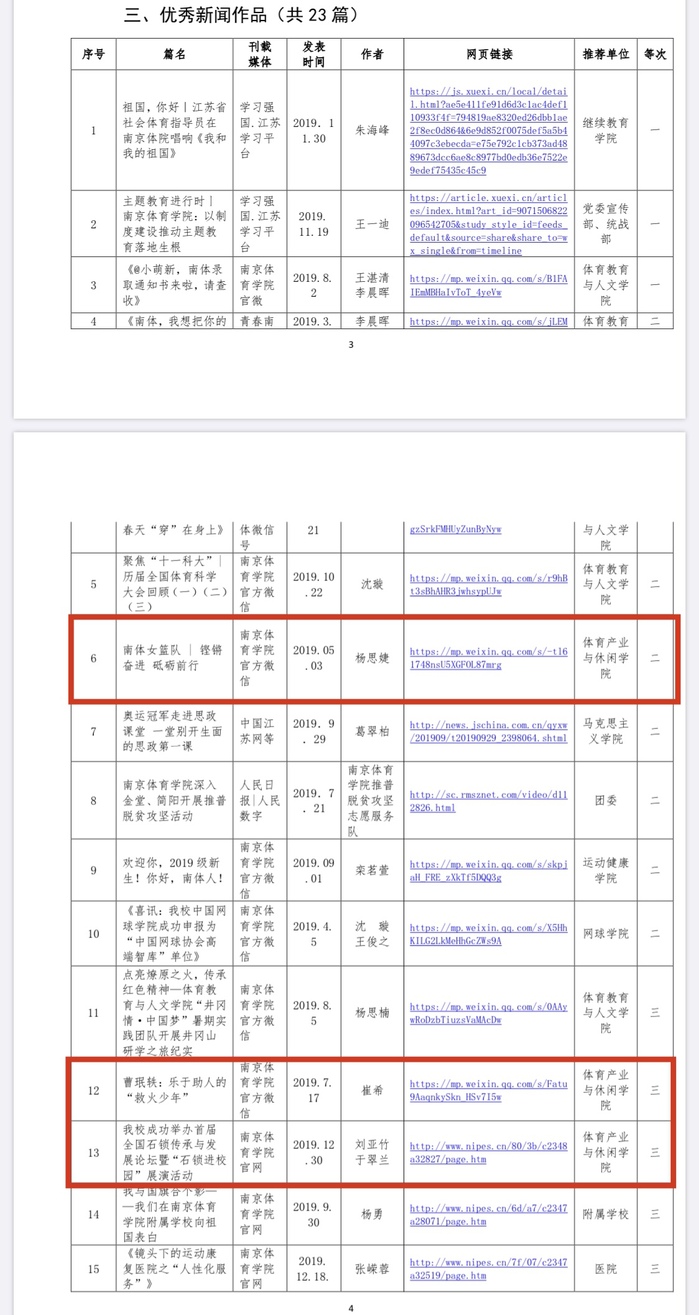 此次评选活动,我院共推荐12篇作品参赛,其中61741班杨思婕同学的参评作品《bjycgold女篮队 | 铿锵奋进 砥砺前行》荣获二等奖,61842班崔希同学和31741班刘亚竹同学的《曹珉轶:乐于助人的“救火少年” 》及《我校成功举办首届全国石锁传承与发展论坛暨“石锁进校园”展演活动》两个作品荣获三等奖。