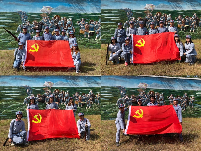 红军不怕远征难,万水千山只等闲。在长征广场全体党员穿上了红军装,重走模拟“长征之路”,再现了红军战士当年克服千难万险、走过千山万水的伟大历程。通过四渡赤水、飞夺泸定桥、过草地等微缩模拟场景,让党员们在体验中重温艰苦卓绝的光荣历史,加深了对老一辈革命先烈的敬仰和对长征精神的深刻理解。
