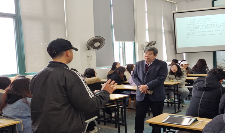 在同学们与周建波教授互动过程中,几位同学向周教授提出了自己的问题和不解,周教授耐心、细心地给同学们进行解惑答疑,帮助同学们更好地理解了传统文化对现代企业管理的作用。